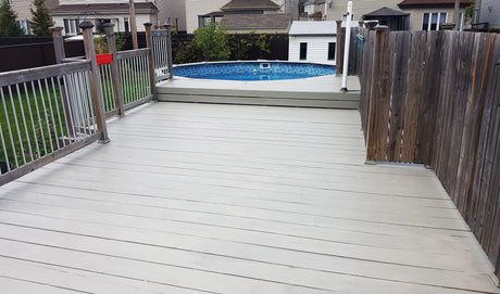Quant au produit, il est un peu plus épais que de la peinture, mais il est facile à travailler avec un pinceau bon marché de 10 cm acheté chez Harbor Freight. Lors de l'application, j'ai remarqué qu'il était brun foncé, mais une fois sec, il est devenu noir. J'ai appliqué quatre couches au total, ce qui est peut-être excessif, mais j'ai acheté les 19 litres pour être sûr d'avoir une couverture suffisante, et j'en ajouterai d'autres si nécessaire (je vais peut-être essayer de recouvrir le dessous des 4x4 pour mon prochain projet afin de voir si ce produit ralentit la pourriture une fois enterrés). Si je n'ai mis que 4 étoiles, c'est parce qu'il n'a pas encore été testé en conditions réelles. Le test sera vraiment positif avec un ou deux jours de pluie ininterrompue, mais pour l'instant, avec ces fortes averses rapides, le produit est efficace.